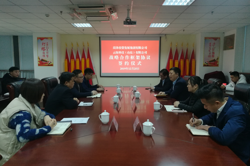 為貫徹落實(shí)《菏澤市智慧城市頂層設(shè)計(jì)(總體規(guī)劃)》、《菏澤市智慧城市三年行動(dòng)計(jì)劃(2019-2021)》等文件要求,積極響應(yīng)市委市政府關(guān)于加快智慧城市建設(shè)的號(hào)召。2019年12月25日上午,菏澤投資發(fā)展集團(tuán)有限公司與云??萍迹ㄉ綎|)有限公司戰(zhàn)略合作框架協(xié)議簽約儀式在菏投集團(tuán)公司第二會(huì)議室隆重舉行。菏投集團(tuán)公司黨委副書記、總經(jīng)理丁萬(wàn)國(guó)與云??萍迹ㄉ綎|)有限公司董事長(zhǎng)王如輝代表雙方簽署《戰(zhàn)略合作框架協(xié)議》,菏投集團(tuán)公司黨委委員、副總經(jīng)理肖培飛,董事會(huì)秘書晁磊及投資與企業(yè)管理部、融資與財(cái)務(wù)管理部相關(guān)同志參加了簽約儀式。